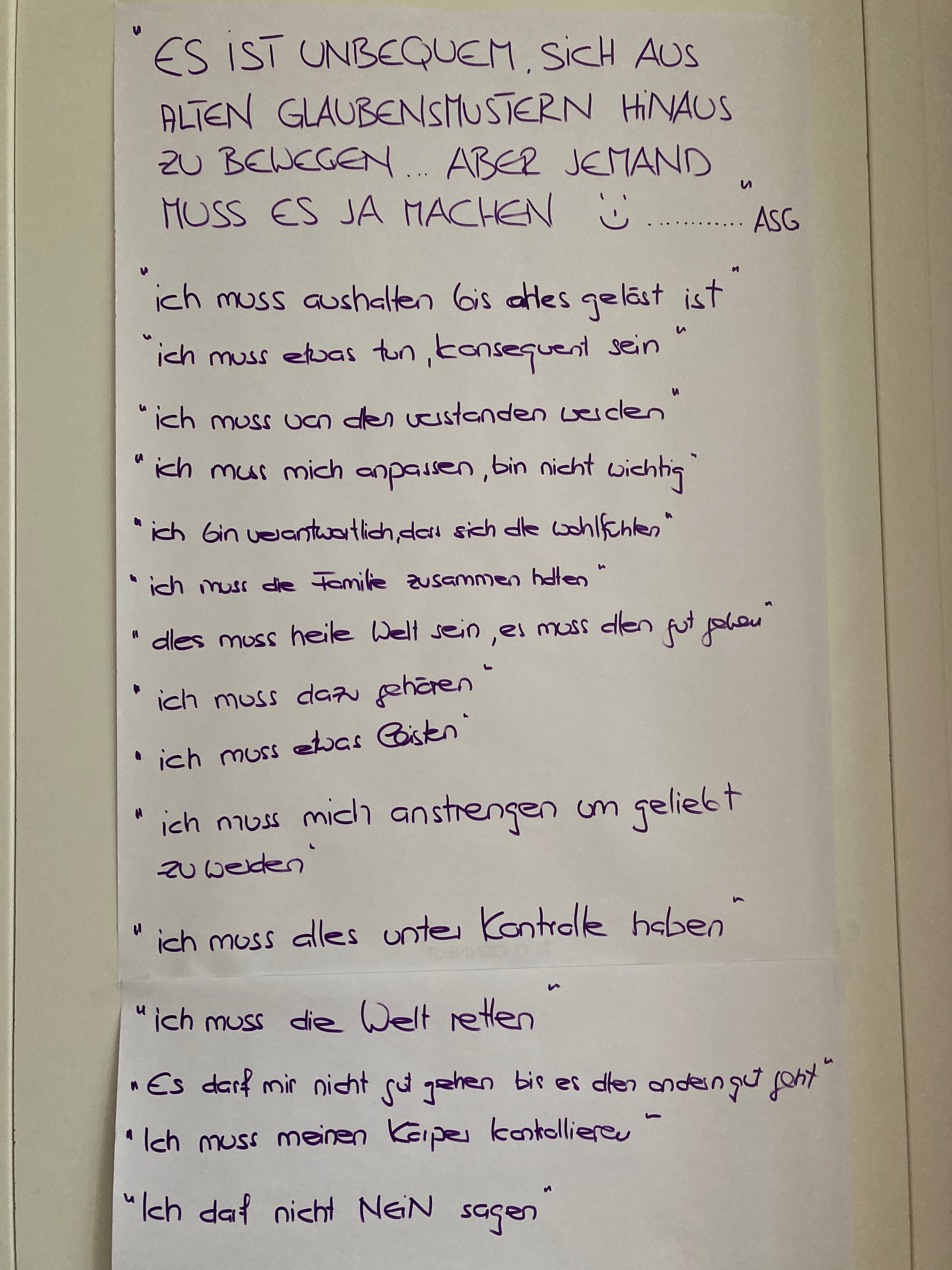 Die folgenden Glaubensmuster haben wir gemeinsam zusammen getragen und damit sicht- und fühlbar gemacht: